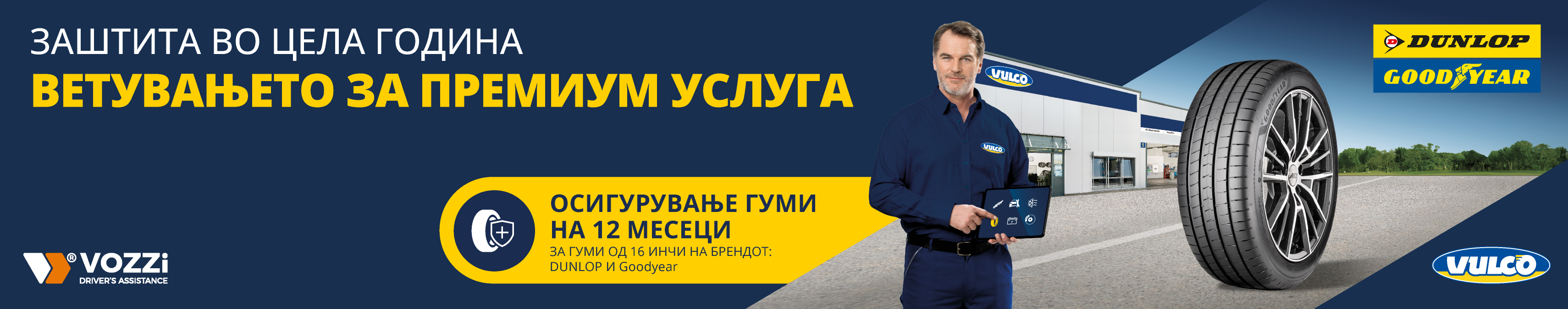 купи комплет од четири goodyear или dunlop гуми од 16 инчи и погоре, вклучувајќи монтирање и добивање на Vozzi картичка од дилерот.